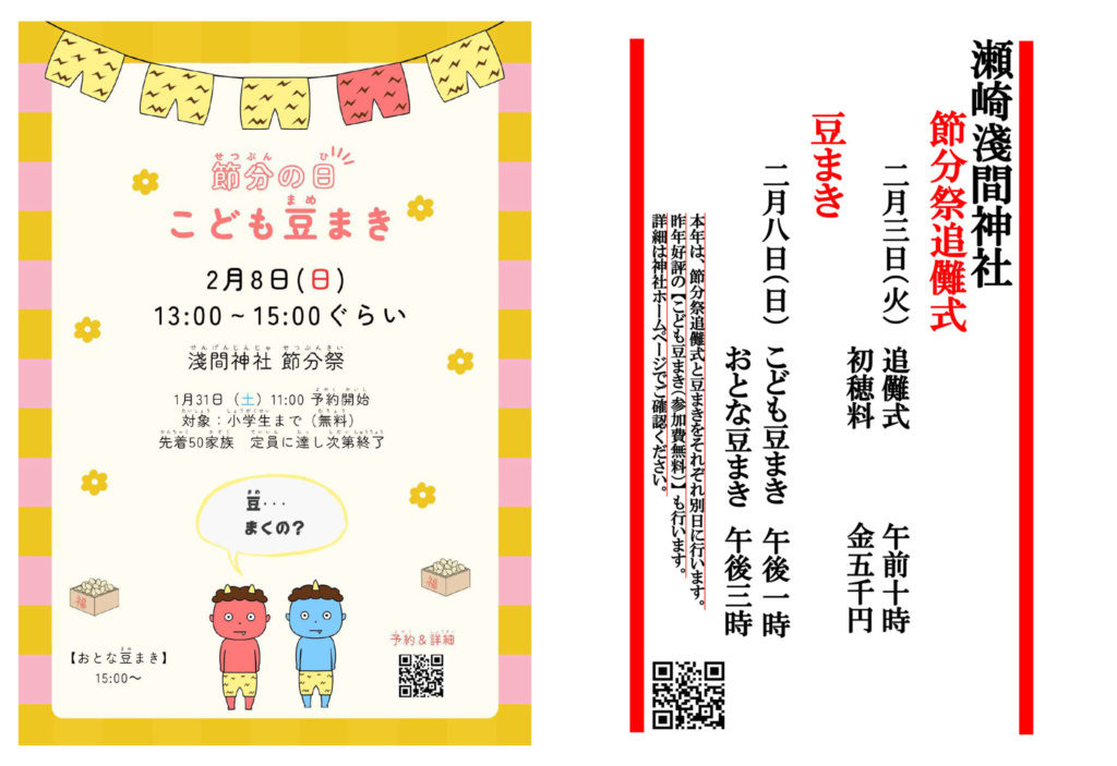 ※2月8日(日)が雨天の場合、豆まきは中止になります。延期はございません